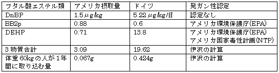 などの研究があります。 フタル酸エステル類の中には、免疫増強作用を持つ物質(DEHP、DnBP)があります。 フタル酸エステル類以外にも、床のプラスチックには、カゼイン(乳たんぱく)も使われています。 まとめ 塩ビ製品などに含まれている可塑剤のフタル酸エステル類は、人体に大量に取り込まれています。 又、そのうちのDEHPとBB2Pは、発ガン性があります。 塩ビなどプラスチック製品のインテリア用品がぜん息を起こしている可能性が高い事がわかりました。 |