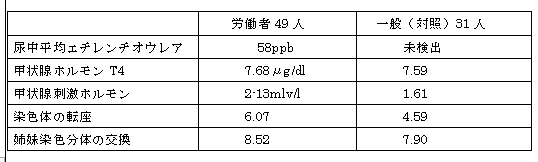 マンネブ、マンゼブ(EBDCジチオカーバメート系農薬)はアメリカ国内では、一般に広く使われ1990年以前には、1年間で3620トンから5560トン使用されていた。 結果 甲状腺ホルモンT4の減少は見られなかったが、甲状腺ホルモンの増加は見られた。更に染色体の異常も統計的に有意に見られた。 マンゼブの様々な影響 微量でも、ネズミの胚の発生を阻害する。紡錘体の集合を阻害する。 女性の不稔に関与している可能性がある。 Curr Pharm Des 2007;13(29):2989-3004 (動物実験で3日間子宮中の甲状腺ホルモンがなくなると自閉症の患者の脳と同様な変化がみられる。) 自閉症に甲状腺ホルモン異常との関連が見られる。甲状腺に対する毒物として、アブラナ科植物に多く含まれる。 チオシアネートなどの他に農業として、2・4-D、アセトクロール、アミノトリアゾール、アミトロール、ブロモキシール、マンゼブ、 チオウレアがある。 他にPCB、過塩素酸、水銀などが疑われている。 J Neurol Sci 2007 Nov15;262(1-2):15-26 マンゼブはDNAの一本鎖の切断を量に比例してもたらす。 Toxicol Appl Pharmacol 2006 Marl;211(2)87-96 解説 マンゼブなどのEBDC(エチレンビスジオカーバーメート)系農薬は動物には、甲状腺に対する毒性や発がん性などがはっきりしています。IARC(国際ガン研究機関)は発ガン性の分類を2001年に1段階落として、グループ3(発ガン性について分類できない)にしました。これは動物での発がんがヒトには起きないことの強い証拠がある場合の分類です。 訳/解説 伊澤真一